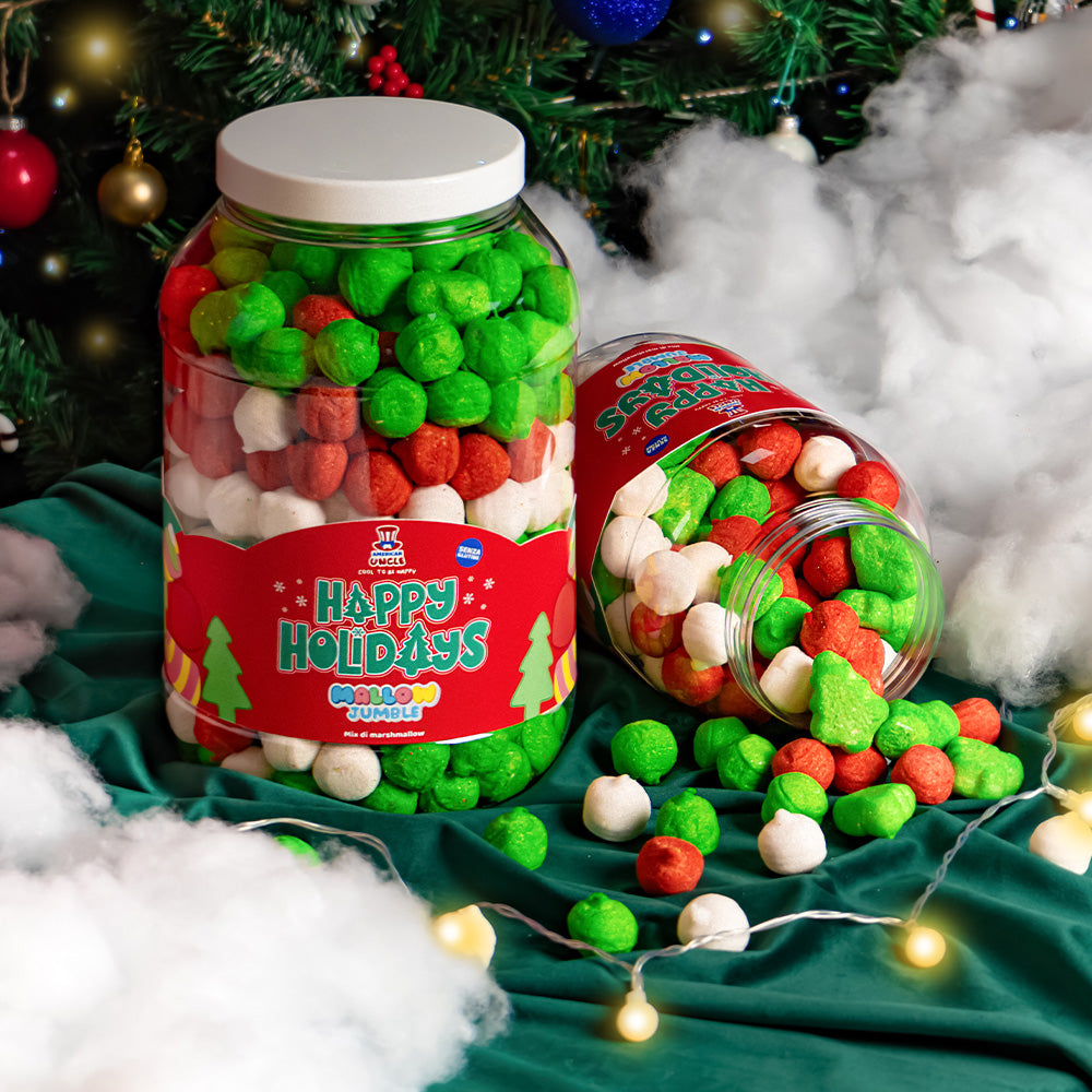 ¿Conoces a un fanático de los malvaviscos y quieres sorprenderlo con un regalo de Navidad original? Mallow Jumble ¡Es lo que necesitas! Este frasco es el paraíso de los malvaviscos. A ti te corresponde la divertida tarea de mezclar los sabores de malvavisco para hacer aún más único el regalo: selecciona hasta 6 diferentes entre más de 10 disponibles y crea el Mallow Jumble hecho a medida para el destinatario del regalo!