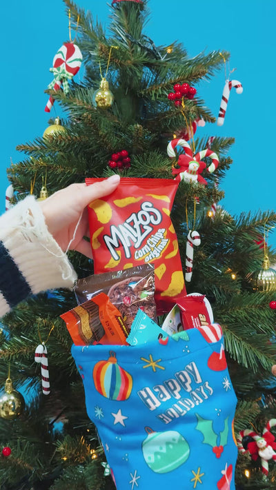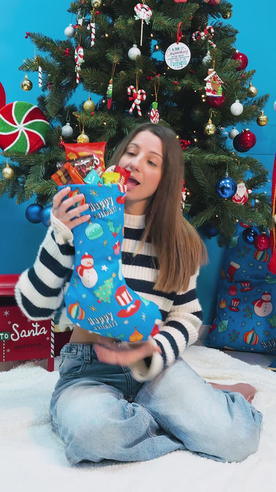 Este año, la Befana ha abandonado la escoba y se ha embarcado en un avión para una aventura global en busca de los snack más irresistibles del planeta. ¡¿Y adivina qué?! ¡Todos están aquí dentro de las Medias de American Uncle! Realizada en suave y cálido forro polar de calidad, esta Media contiene 15 snack exclusivos, dulces y salados, elegidos entre los más amados y buscados del mundo.