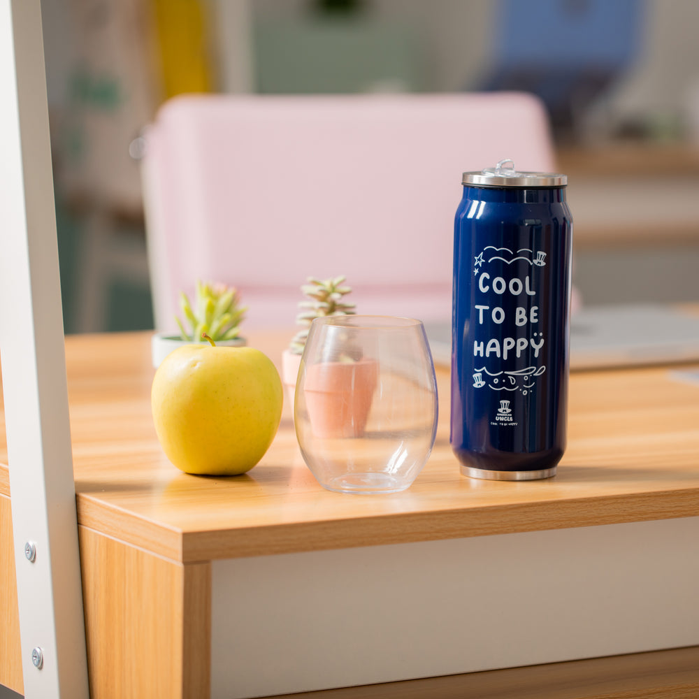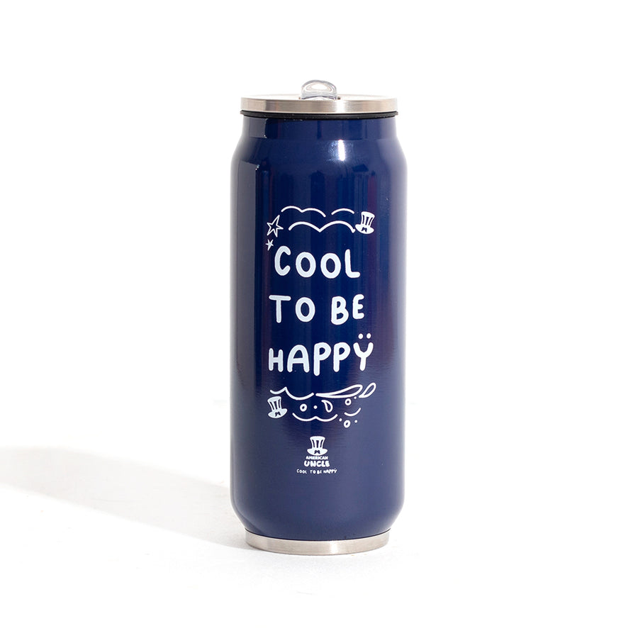 Botella Cool to be Happy, botella hecha de acero resistente de 500 ml con pajita antibacteriana integrada, color azul con texto Cool to be Happy blanco, 6,3 x 17,5 cm.