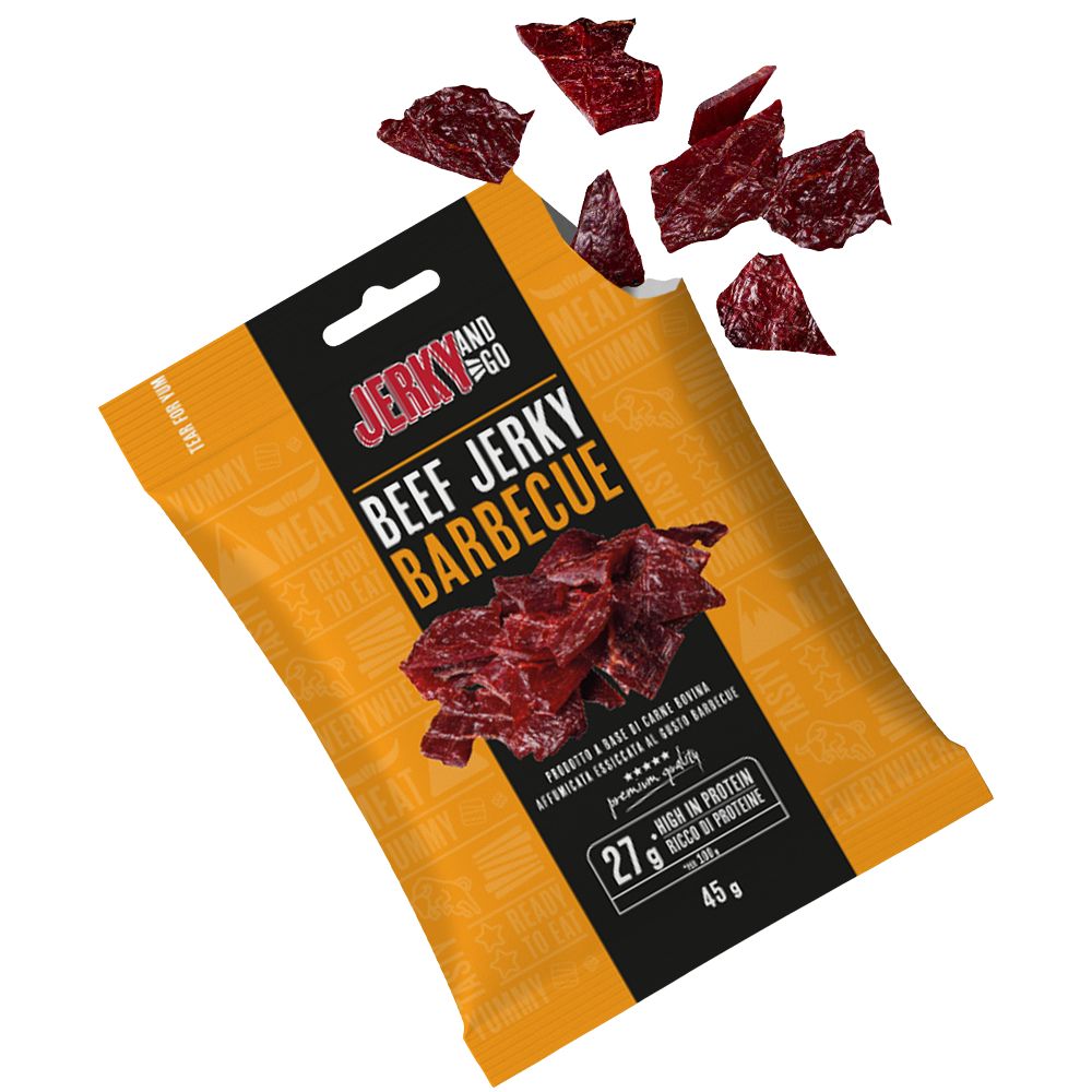 Este snack listo para comer y rico en proteínas - 27g por 100g de producto - es la manera más sabrosa de disfrutar de una pausa saludable pero deliciosa. Ok, ha llegado el momento también para ti de probarlo: prueba también las otras variantes de sabor y elige tu carne seca Jerky and Go favorita.