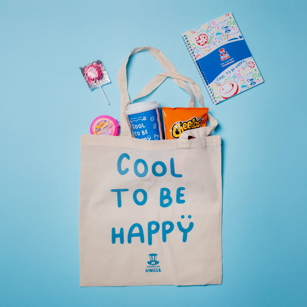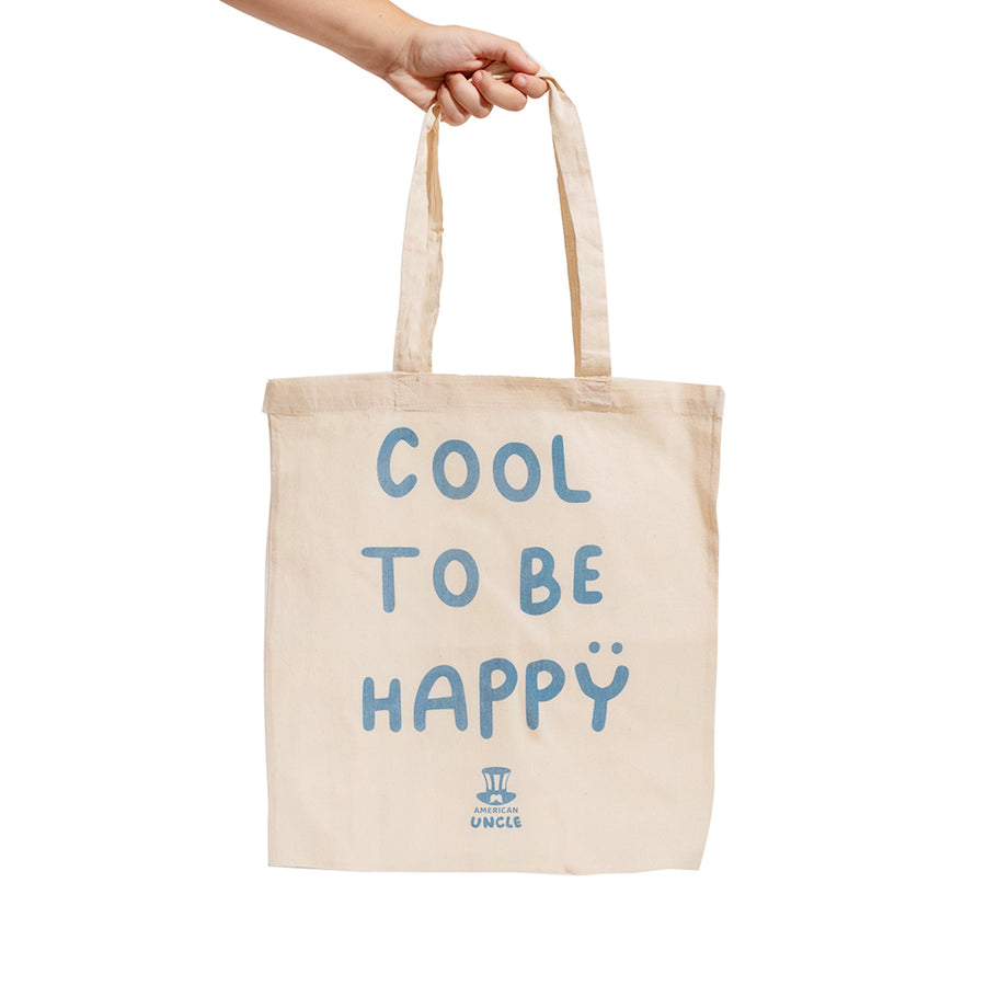 Shopper Cool to be Happy 35x40cm, bolsa ligera y espaciosa de algodón de alta calidad, de color habana y con texto Cool to be Happy colorido, idea de regalo original.