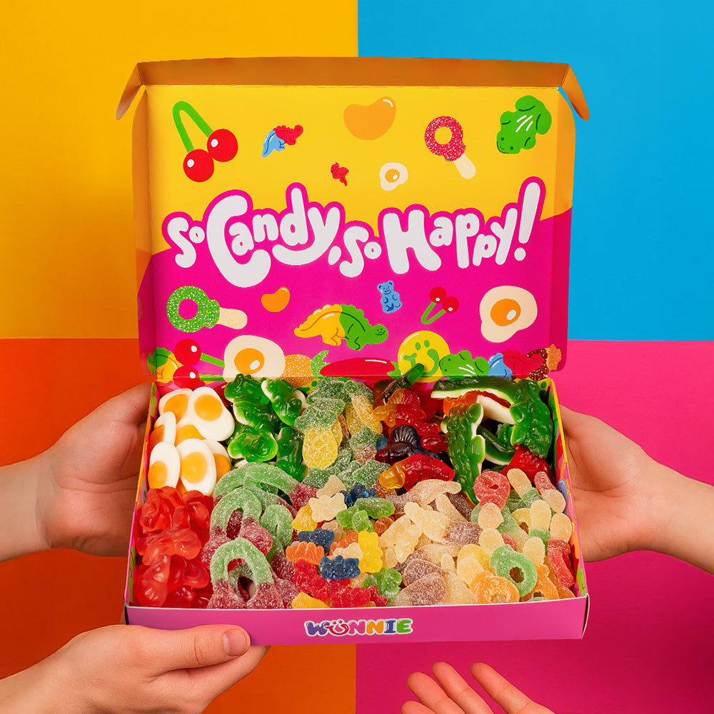 Más de 30 caramelos para elegir, ácidos y no, XL y rellenos: desata tu creatividad y añade Wunnie box al carrito, la única ORIGINAL Candy box.