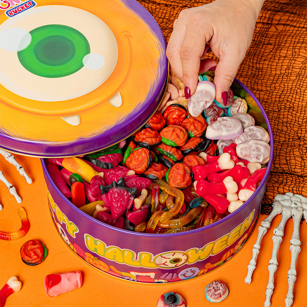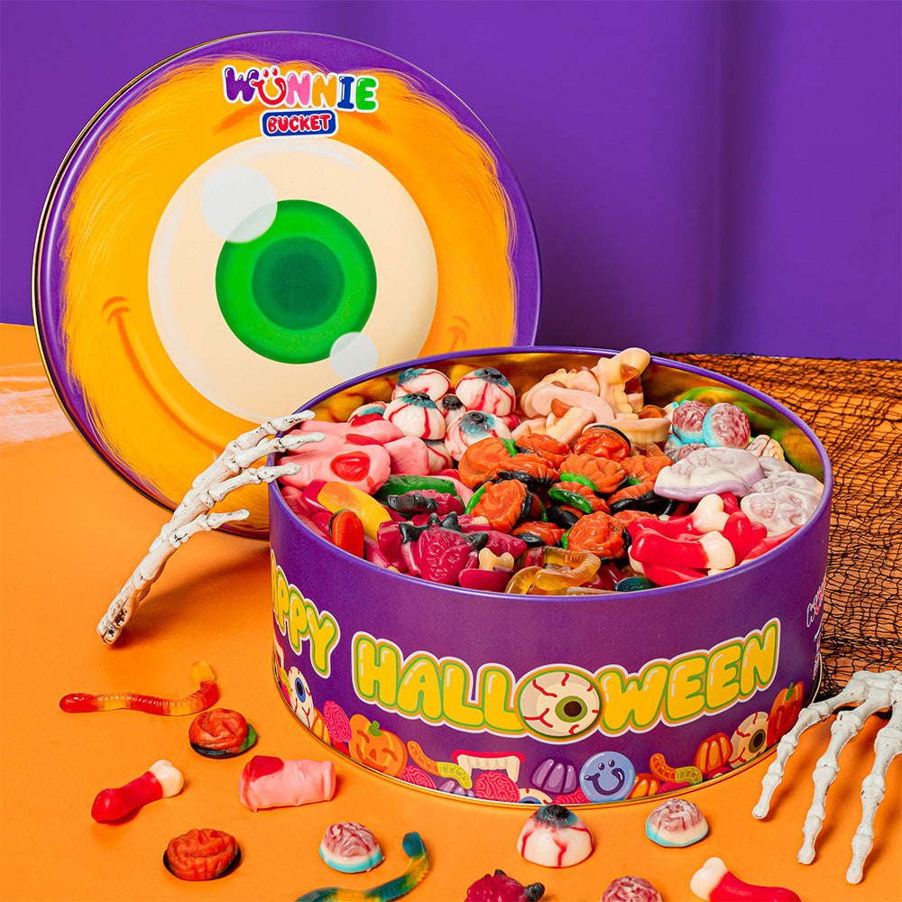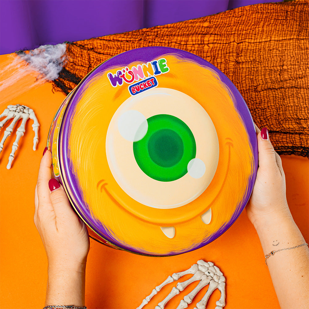El Wunnie bucket es una lata personalizable con 2 tipos de caramelos de goma: ¡puedes elegir hasta 10 sabores diferentes entre más de 30 disponibles!